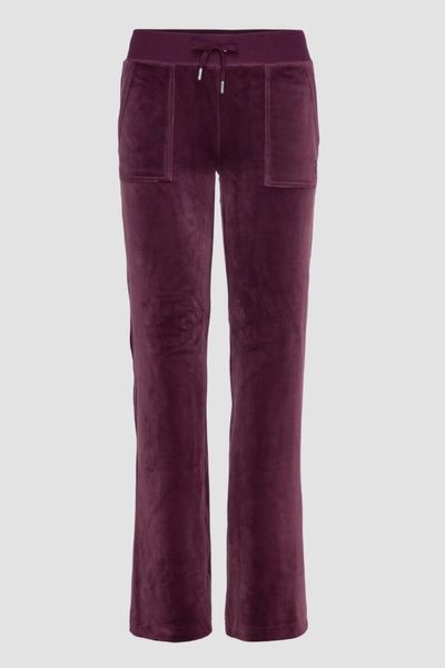 JUICY COUTURE Śliwkowe damskie spodnie welurowe Del Ray Pocket Pant, Rozmiar S