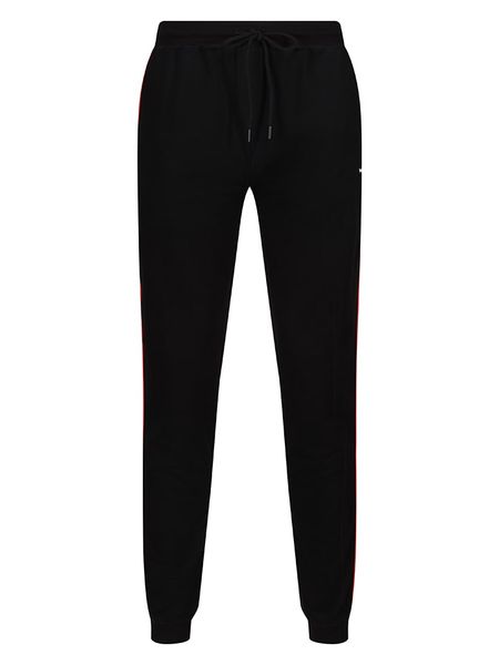 – czysta bawełna- pas: ściągacz tunelowy- kieszenie: wpuszczane- detale: kontrastujące paski- zakończenia nogawek: ściągacz- krój: luźny- look: jednokolorowy- nadruk: logo