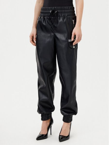 Karl Lagerfeld Jeans Spodnie z imitacji skóry A1W10059 Czarny Regular Fit