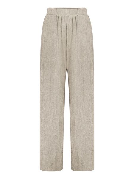 Beżowy Komplet z Prążkowanego Materiału T-shirt Szerokie Spodnie z Gumką w Pasie Alandrea