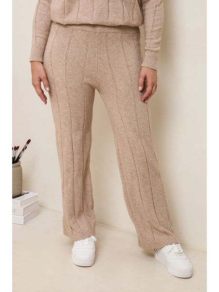 Jasnobrązowy Komplet Bluzka z Wiązanym Paskiem i Szerokie Spodnie Dolarea