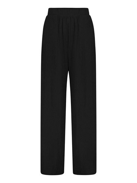 Czarny Komplet z Tłoczonej Tkaniny Szerokie Spodnie i Bufiasta Bluzka Calloti
