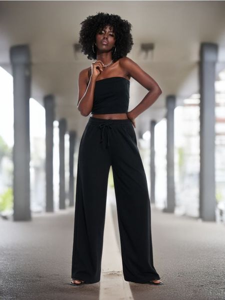 Sinsay – Spodnie z szeroką nogawką – czarny – gumka i wiązanie w pasie,2 kieszenie z przodu,długie, luźne nogawki