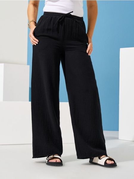 Sinsay – Muślinowe spodnie wide leg – czarny –