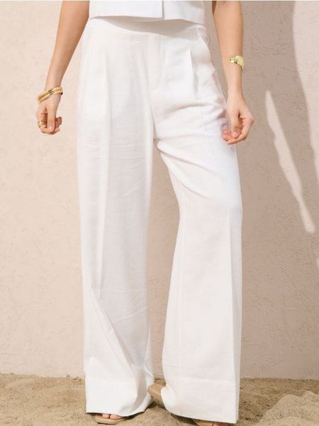 Sinsay – Spodnie wide leg z zakładkami – kremowy – materiał z domieszką lnu