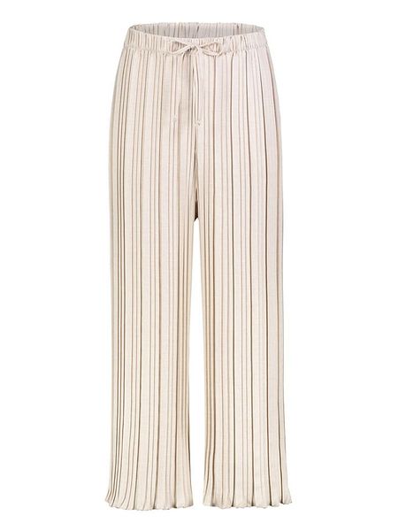 – wysokość pasa: high waist- pas: ściągacz tunelowy- krój: prosty- wzór: paski- look: plisy