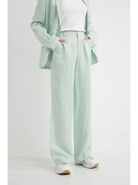 – z dodatkiem lnu- wysokość pasa: regular waist- zapięcie: haczyk i suwak- kieszenie: wpuszczane i tylne- krój: luźny- look: jednokolorowy