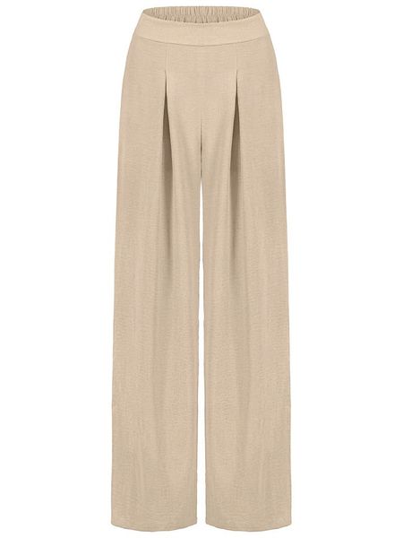Beżowy Komplet z Wiskozą w Stylu Rustykalnym Bluzka i Szerokie Spodnie Ronilae