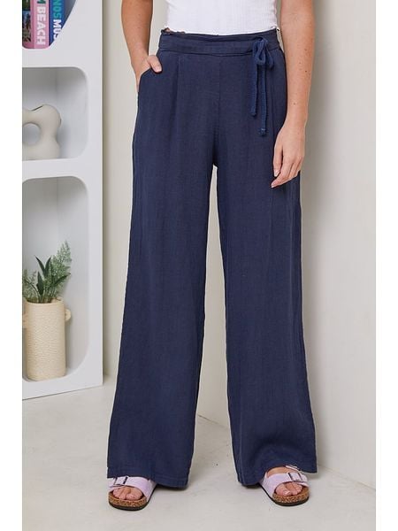 – czysty len- pas: ściągacz tunelowy- kieszenie: wpuszczane- krój: luźny – look: jednokolorowy