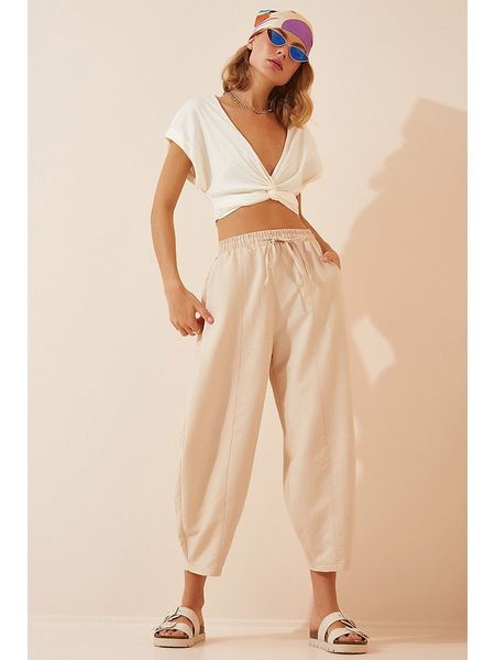 Happiness Istanbul Spodnie w kolorze beżowym rozmiar: 38