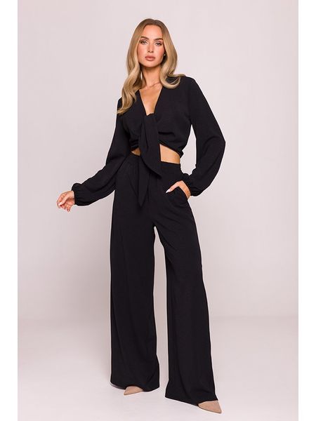 kobieta made of emotion spodnie materiałowe damskie z podwyższonym stanem spodnie materiałowe damskie ze sklepu limango.pl kobieta limango.pl spodnie materiałowe damskie made of emotion czarne spodnie materiałowe damskie