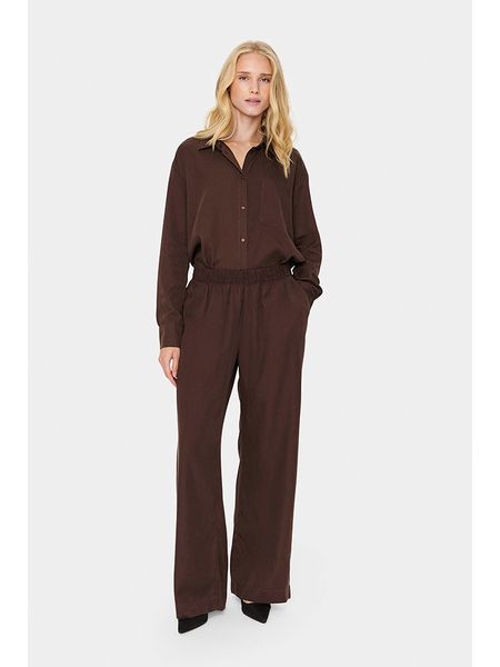– czysty lyocell- wysokość pasa: high waist- pas / ściągacz: elastyczny- fason: comfort fit- krój nogawek: szeroki- look: jednokolorowy