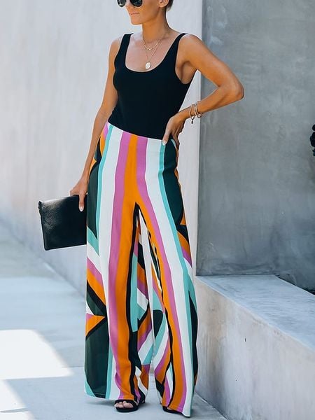 – wysokość pasa: high waist- pas / ściągacz: elastyczny- krój: luźny- wzór: paskiUwaga: Przy wyborze właściwego wariantu zaleca się korzystanie z tabeli rozmiarów.