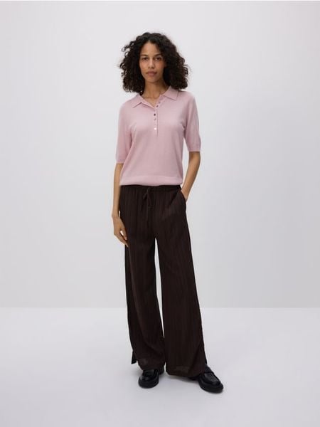 Spodnie o luźnym kroju, wykonane z tkaniny z wiskozą.
