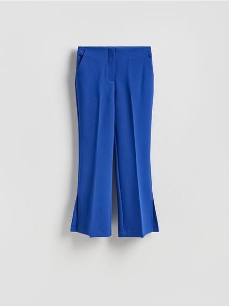 Spodnie o kroju flare, wykonane z tkaniny z dodatkiem wiskozy.