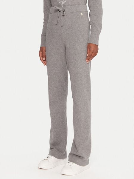Szary Dzianinowy Komplet z Ozdobną Lamówką Sweter i Szerokie Spodnie Ralenae