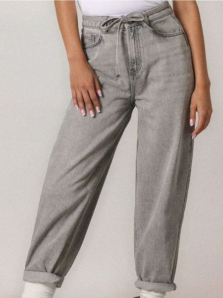 Spodnie jeansowe z wysokim stanem – szary