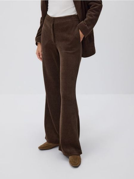 Spodnie o kroju flare, wykonane ze sztruksowej dzianiny.