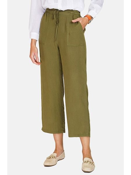 – z dodatkiem lnu- wysokość pasa: high waist- pas: ściągacz tunelowy- kieszenie: wpuszczane- długość nogawki: 7/8- krój: luźny- look: jednokolorowyWskazówka: Na metkach odzieży tej marki znajdują się rozmiary francuskie. Rozmiarówka została przez nas przeliczona. Podane do wyboru warianty rozmiarów odpowiadają standardowym europejskim rozmiarom konfekcji. Prosimy zapoznać się z zamieszczonym objaśnieniem rozmiarów.