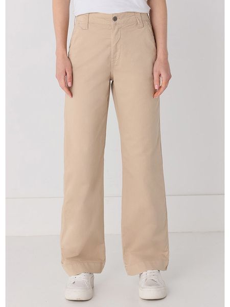 – wysokość pasa: regular waist- szlufki na pasek: tak- zapięcie: guzik i suwak- kieszenie: wpuszczane i tylne- krój nogawek: szeroki- look: jednokolorowy