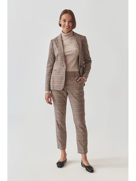 – zapięcie: haftka, guzik i zamek błyskawiczny- szlufki na pasek: tak- kieszenie: wpuszczane i tylne- krój: prosty- wzór: kratka