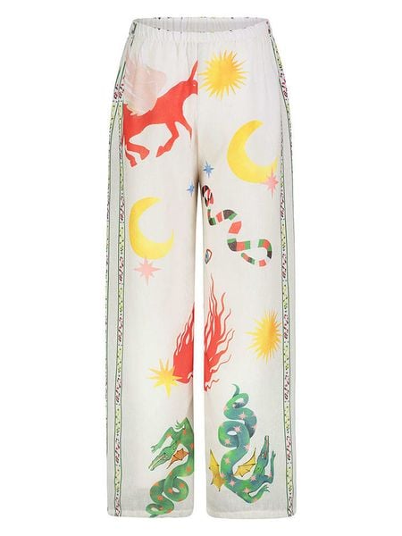 – wysokość pasa: high waist- pas / ściągacz: elastyczny- kieszenie: wpuszczane- krój: luźny- wzór: graficzny