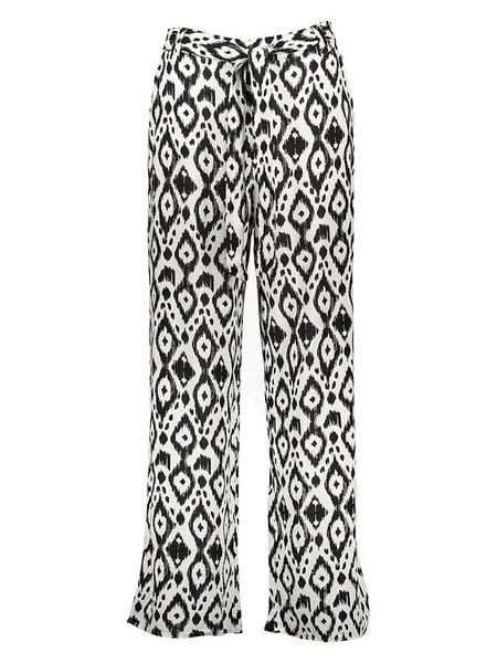 Spodnie damskie wide z wiskozy z motywem kwiatowym czarne Bohimi 906