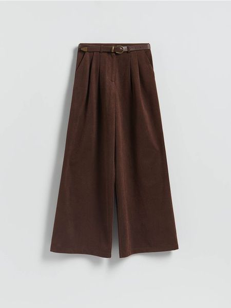 Szerokie spodnie z paskiem – ciemnobrązowy