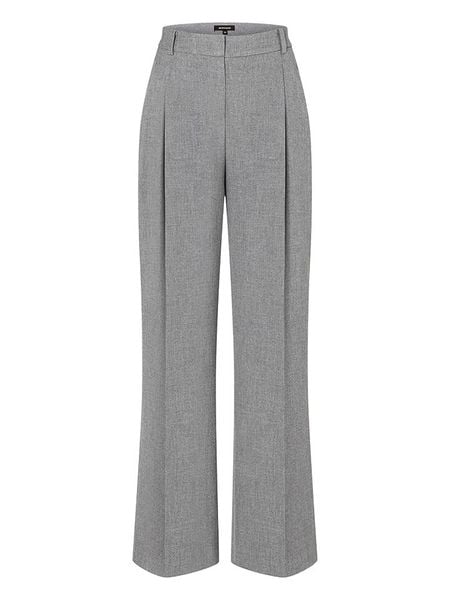 – wysokość pasa: high waist- szlufki na pasek: tak- zapięcie: haczyk i suwak- kieszenie: wpuszczane- detale: kant- krój: luźny- wzór: melanżowy