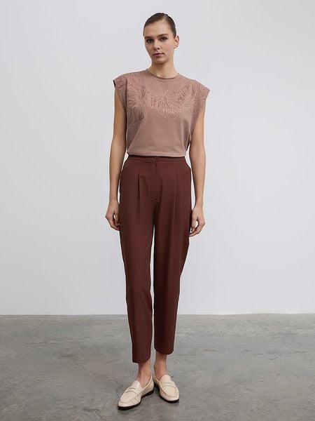 spodnie materiałowe damskie bgn spodnie materiałowe damskie z podwyższonym stanem brązowe spodnie materiałowe damskie spodnie materiałowe damskie ze sklepu limango.pl kobieta bgn kobieta limango.pl