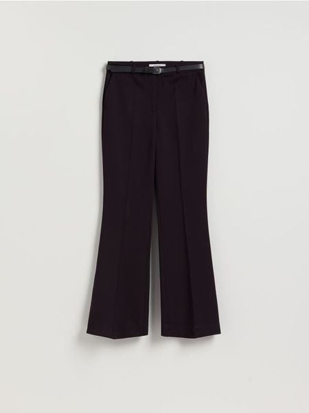 Spodnie o kroju flare, wykonane z tkaniny z dodatkiem wiskozy.