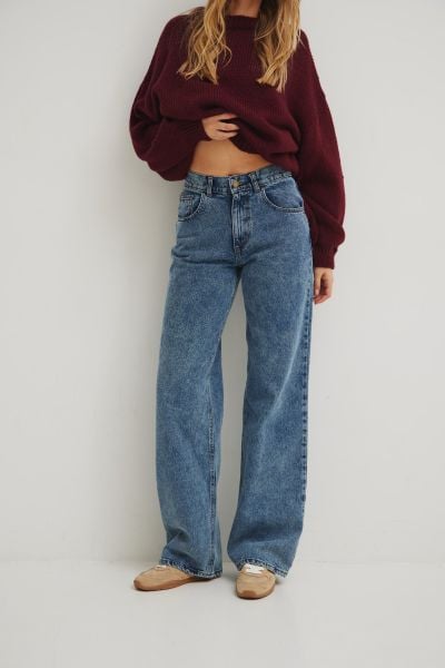 Spodnie jeansowe z szerokimi nogawkami w kolorze NAVY BLUE- MANHATTAN-L