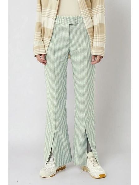 – zapięcie: haczyk i suwak- kieszenie: wpuszczane i tylne- zakończenia nogawek: z rozcięciem – krój: prosty- wzór: kratka