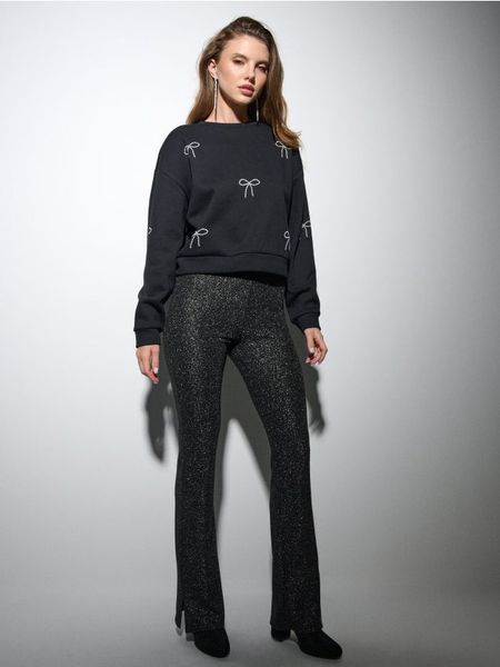 Sinsay – Spodnie flare z metalizowaną nicią – czarny –