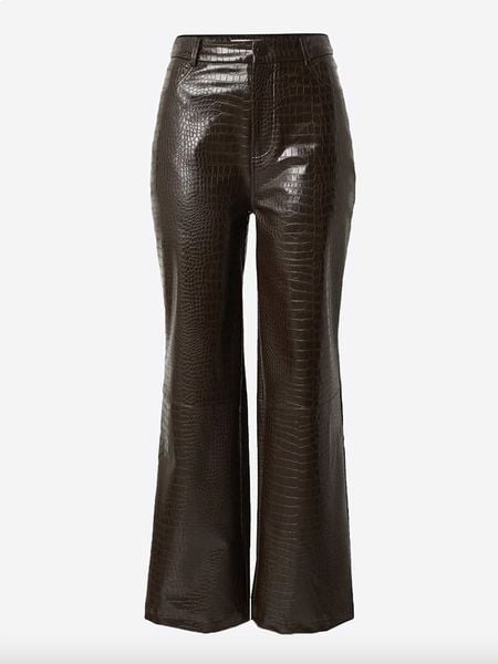 – wysokość pasa: high waist- zapięcie: guzik i suwak- szlufki na pasek: tak- kieszenie: wpuszczane- zakończenia nogawek: dzwony- krój: wąski- wzór: zwierzęcy