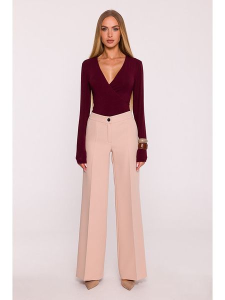 – wysokość pasa: high waist- zapięcie: guzik i suwak- kieszenie: wpuszczane- zakończenia nogawek: dzwony- detale: kant- krój: luźny- look: jednokolorowy