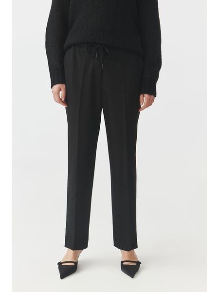 – wysokość pasa: regular waist- krój nogawek: prosty- pas / ściągacz: elastyczny- zapięcie: wiązane tasiemki- kieszenie: wpuszczane- detale: kant