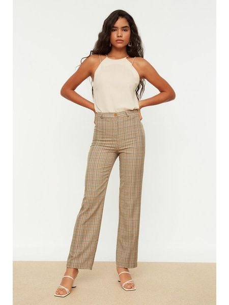 brązowe spodnie materiałowe damskie spodnie materiałowe damskie trendyol kobieta limango.pl kobieta trendyol spodnie materiałowe damskie ze sklepu limango.pl