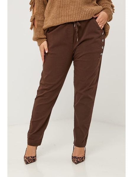 spodnie materiałowe damskie z standardowym stanem spodnie materiałowe damskie curvy lady spodnie materiałowe damskie ze sklepu limango.pl brązowe spodnie materiałowe damskie kobieta curvy lady kobieta limango.pl