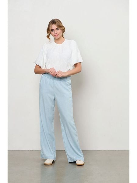 – czysty lyocell- wysokość pasa: high waist- pas / ściągacz: elastyczny- kieszenie: wpuszczane- krój: luźny- look: jednokolorowy