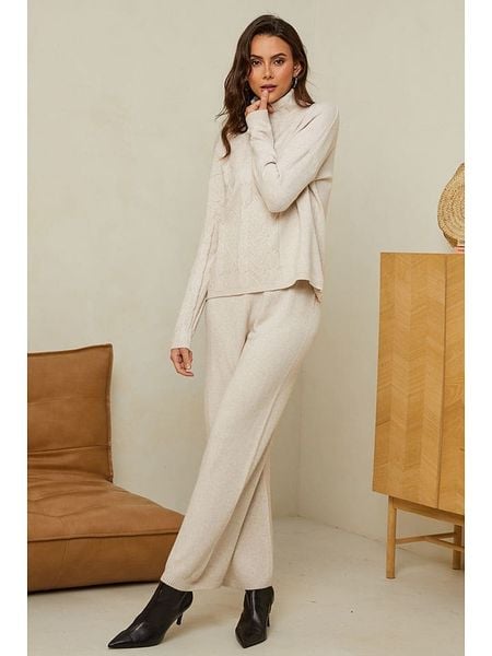 Soft Cashmere Spodnie w kolorze beżowym rozmiar: 38/40