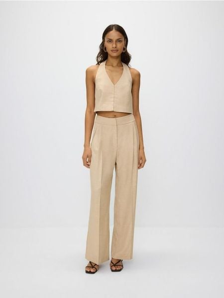Spodnie o swobodnym fasonie, uszyte z tkaniny z domieszką wiskozy.