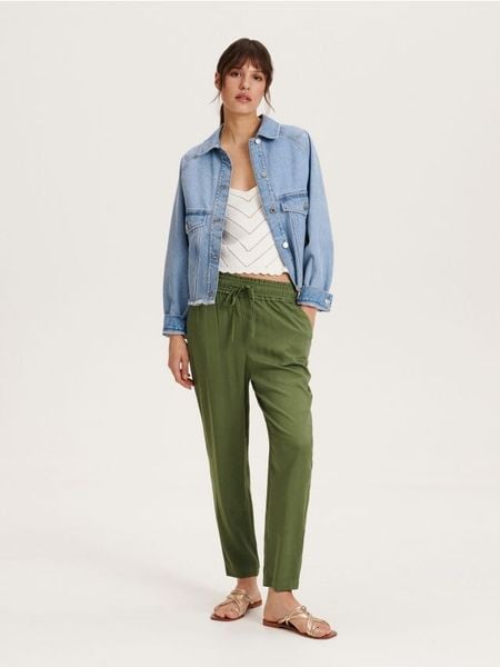kobieta reserved spodnie materiałowe damskie reserved zielone spodnie materiałowe damskie kobieta reserved spodnie materiałowe damskie ze sklepu reserved