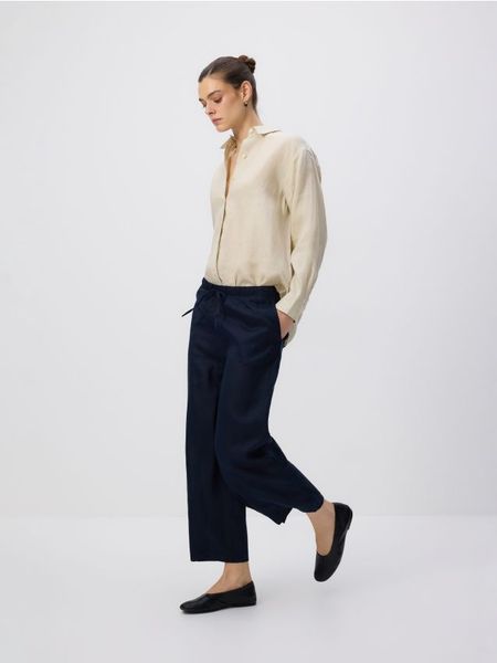Spodnie o prostym kroju, wykonane z lnu.