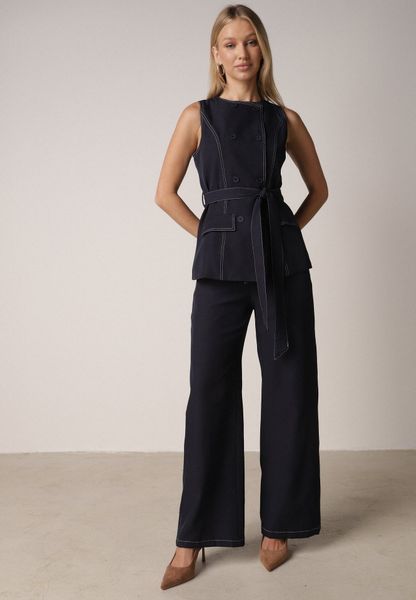Granatowy Komplet Garniturowy Kamizelka z Paskiem i Szerokie Spodnie Zina