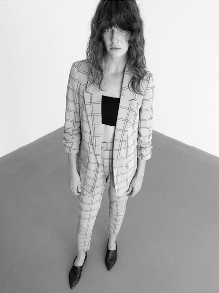 Spodnie o dopasowanym fasonie, uszyte z dzianiny.