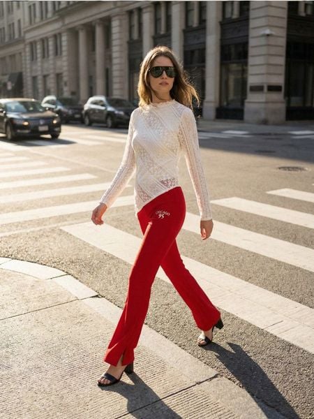 Spodnie flare z ozdobnymi rozcięciami – czerwony