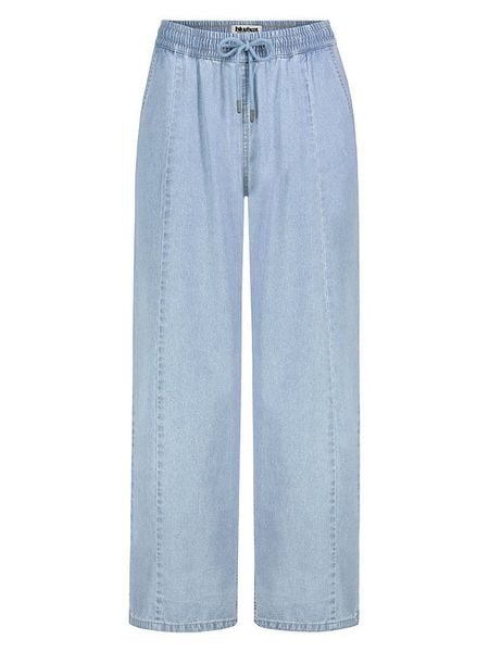 – czysta bawełna- wysokość pasa: high waist- pas: ściągacz tunelowy- kieszenie: wpuszczane- krój: luźny- look: jednokolorowy, stylizowany na dżins