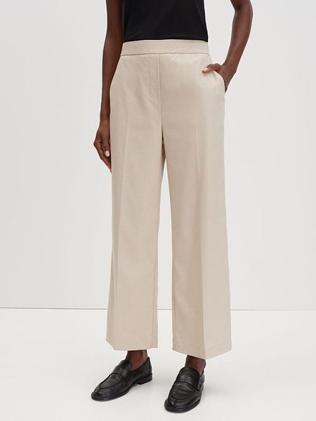 – wysokość pasa: high waist- pas / ściągacz: elastyczny- kieszenie: wpuszczane- detale: kant- krój: luźny- look: jednokolorowy