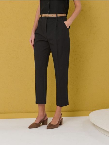 Sinsay – Spodnie carrot z nogawką w kant i paskiem – czarny –